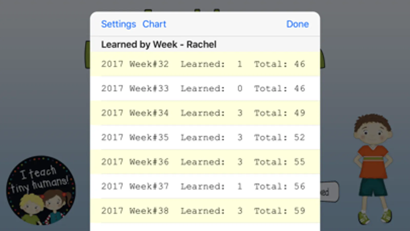 This application allows you to complete comprehensive assessments of your students' abilities across six different categories including letter identification and sounds across upper case, lower case and mixed case. After completing assessments, you can focus interventions by selecting nine known letters or sounds and one unknown for the student. Through incremental rehearsal, known letters or sounds are reinforced while those not yet known are mastered. These techniques have been proven to work in many classroom and home settings.