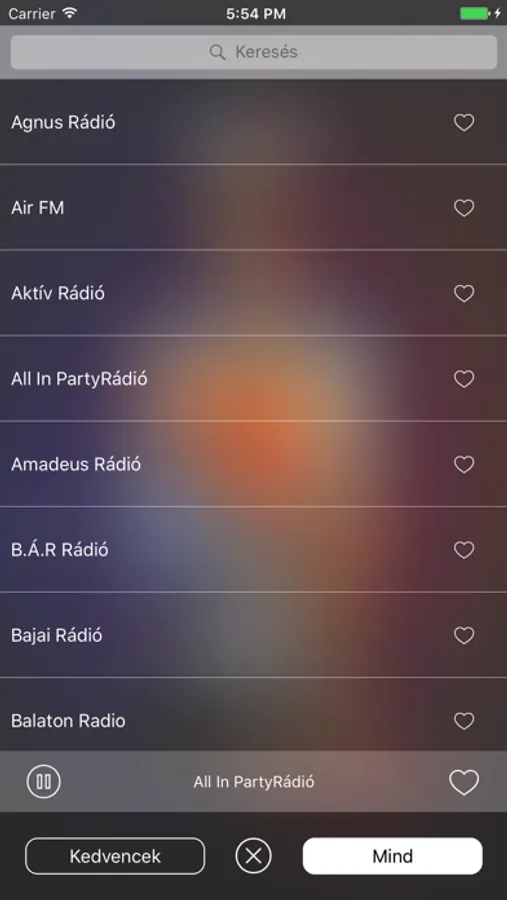 - a rádiók listájában könnyen kereshetsz az állomások között