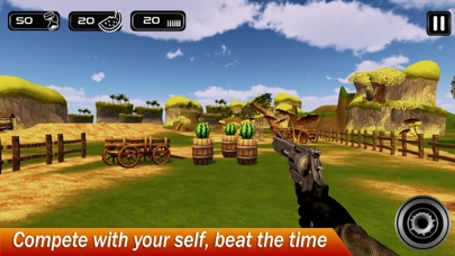 Watermelon shooting is fun and engaging shooter game. Shoot out all watermelons in this interactive shooting game. Watermelon shooting is a challenging first person shooter game. Watermelon shooting game is suitable for children of all ages. Rotate your device in all directions to find and shoot all the watermelons. With colorful graphics and attractive game play.