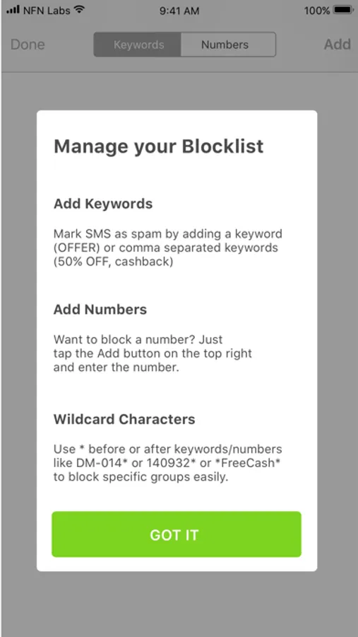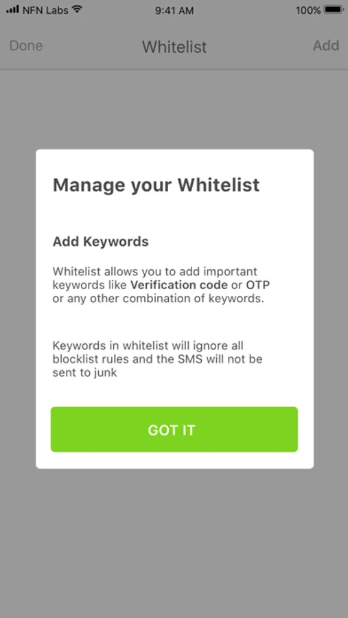 SMS Filter cleans up junk or spam SMSs by using a curated list of spam keywords across different categories. You can add your own block list of keywords or phone numbers to filter spam. If any SMSs have to be always allowed you can add specific keywords to the whitelist as well (like OTP, verification code etc)