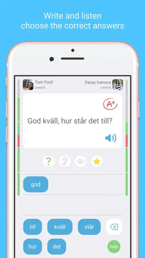 To succeed in studying the Swedish language, you need to use the materials studied as efficiently as possible. LinGo has only the most necessary things to Learn Swedish language phrases and words as quickly as possible and reinforce the studied material. The more often you revise, the better you will know and be able learn to speak Swedish fluently. If you already know and speak Swedish well, you will have an even greater time guessing Swedish words and memorising them with millions of users around the world.