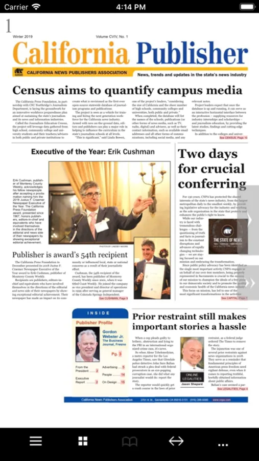 This is an exact digital replica of the California Publisher printed newspaper, a quarterly publication of the California News Publishers Association.