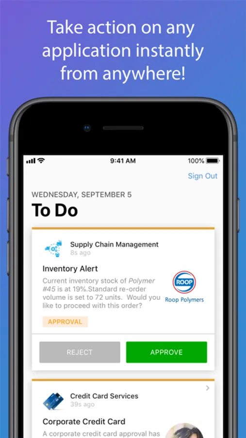 • Manages employees’ to-do list, notifications, approvals, workflows, messaging and social media in a single, modern, intuitive interface.