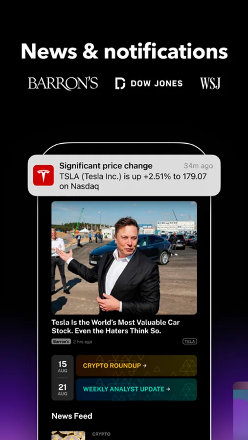 You’re always in the know thanks to the hottest news from world-leading news sources such as Wall Street Journal, Dow Jones, and Barron’s, tailored to your holdings