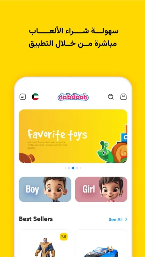 تطبيق دبدوب أكبر متجر الكتروني لبيع الألعاب. تشكيلة كبيرة من ألعاب الأولاد والبنات في جميع الفئات. تصميم بسيط وسلس يجعل تجربة التسوق سهلا و مريح. أحدث الألعاب وأفضل العلامات التجارية مثل ديزني و مارفيل كوميكس وأكثر من ذلك بكثير.