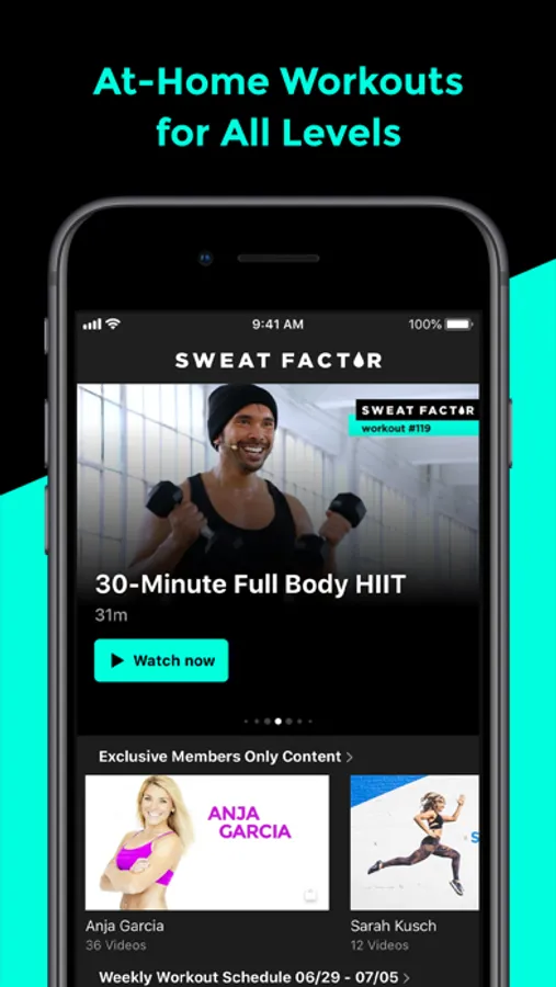 Get all the workouts you need to meet your personal fitness goals. With everything from HIIT to yoga, barre to bootcamp, kettlebells to kickboxing, even pilates & prenatal — we've got you covered. With motivating trainers and killer content, with Sweat Factor you can turn any space into your own private fitness studio.