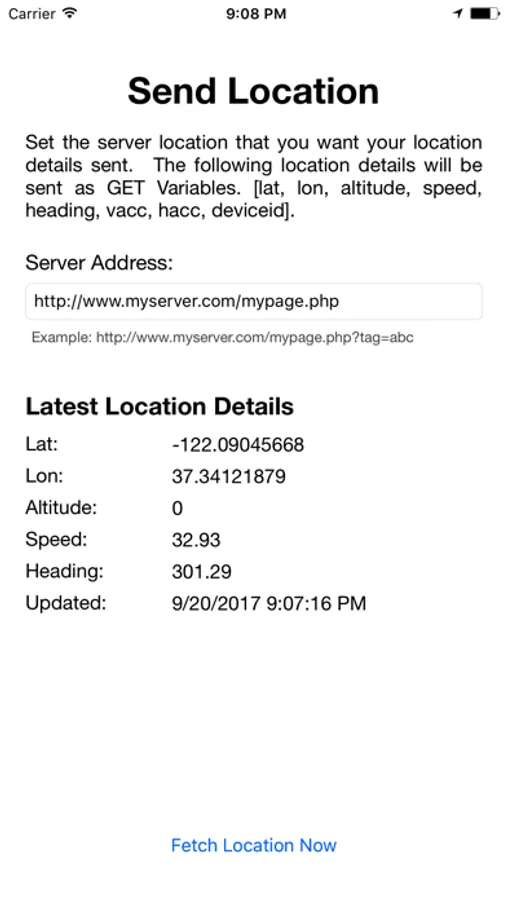 Feel free to add your own GET Variables to your "Server Address" too. The app will recognize the '?' in your "Server Address" and append the location details after.
