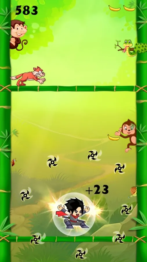Tap, tap, tap ... jump, jump, jump. Jump from one tree to the other, defeat enemies in your way. Climb as high as you can while avoiding squirrels, birds, snakes, monkeys and more impediments. Hit three same consecutive enemies to get a bonus power-up skill. Grab shields for protection.