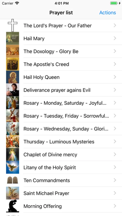 Christian prayers in English, French, Italian, Polish, Spanish, Slovak language.