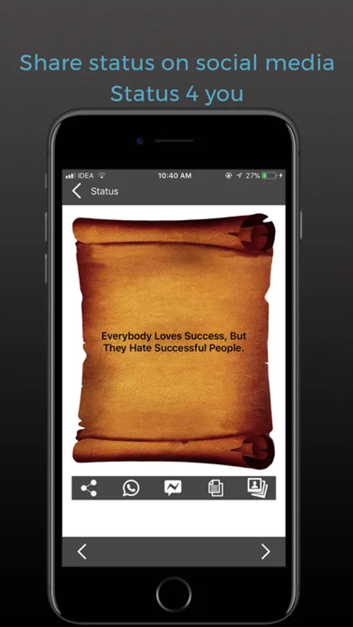 Completely free attitude status in english app with latest collection for setting as your status. Setting Best Status or English Quotes gets increased likes on your wall posts. If you are looking for a Status app, then your search ends in this attitude status app for all in English.