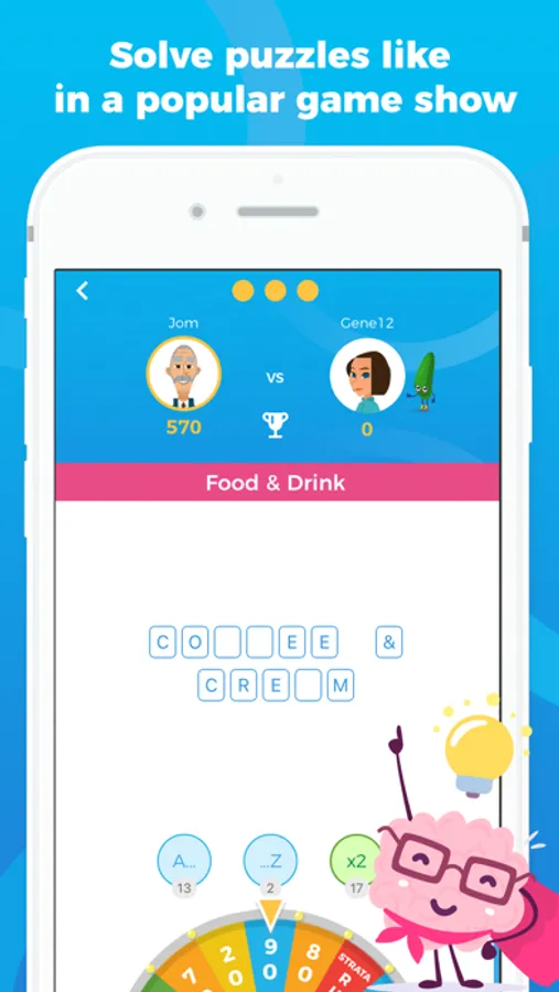 Join thousands of solving word puzzles in face-to-face duels! Spin the wheel, defeat opponents and get a fortune.