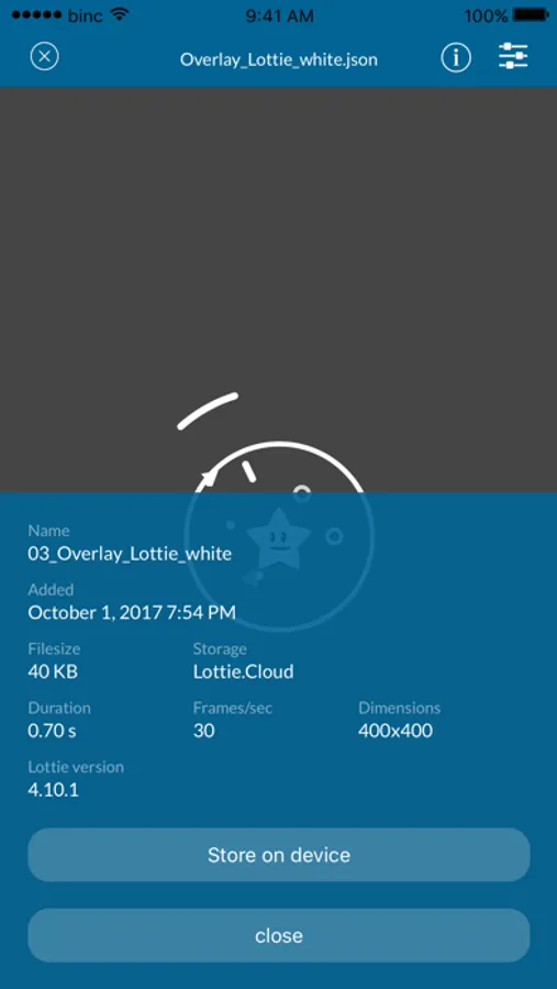 - Add Lottie files via LottieCloud, AirDrop or copy from Files app