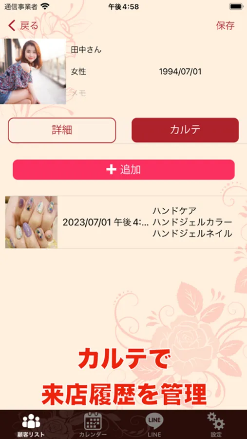 ネイルカルテは、美容師のみなさんの顧客管理を支援するアプリです。