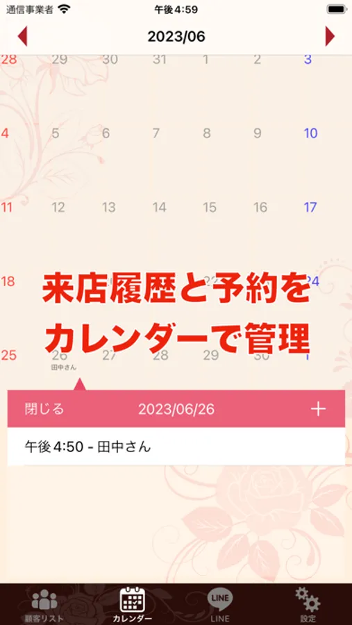 お客様の情報や来店状況を登録して、