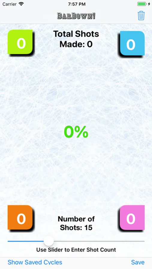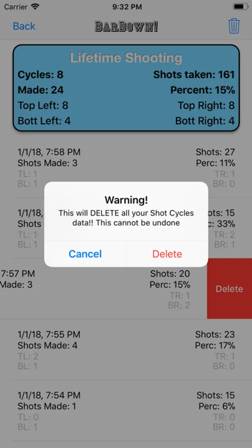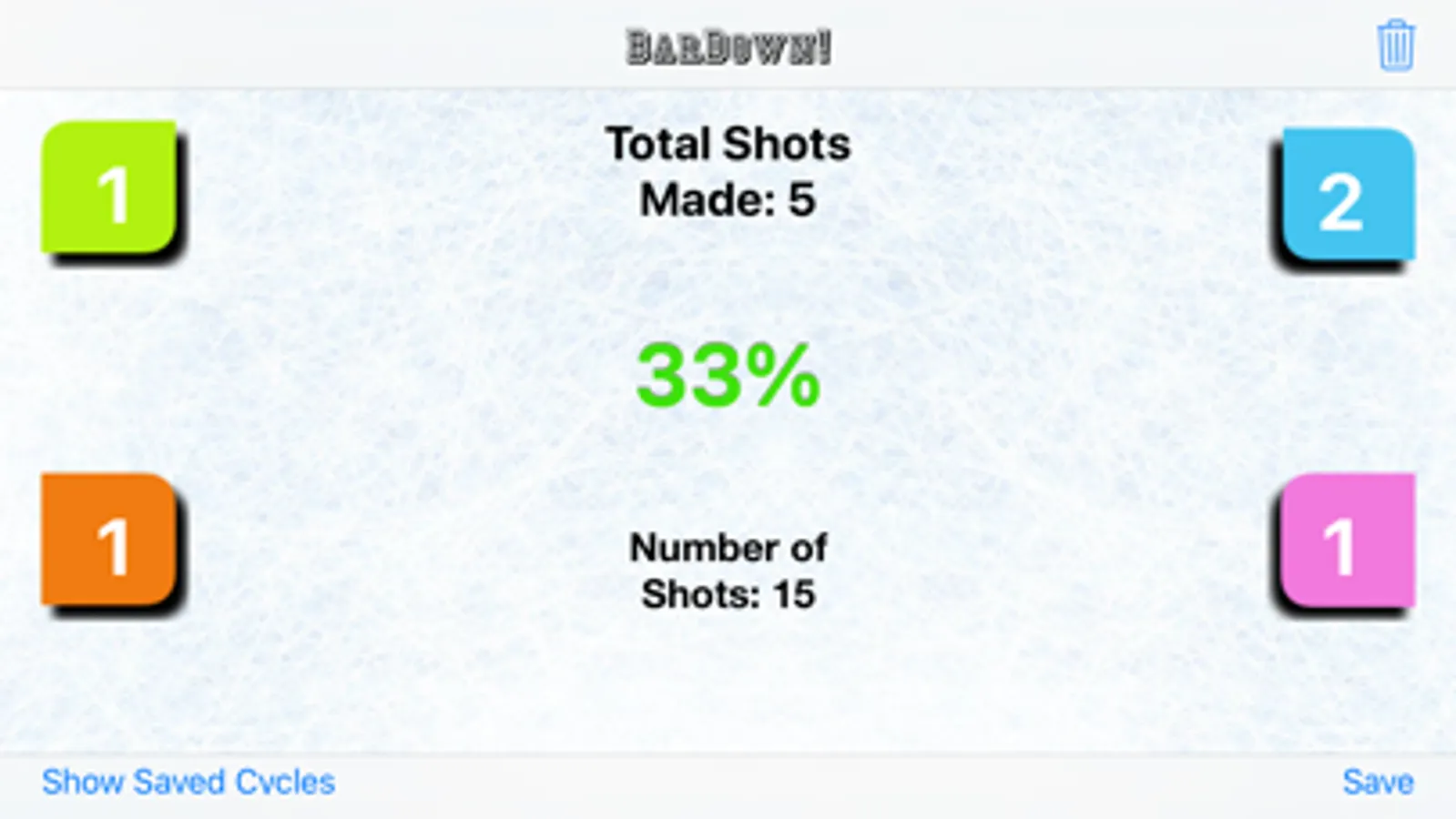 BarDown keeps a tally of your shots made and shooting percentage. With a tap of the save button you can forever have a history of your shooting!