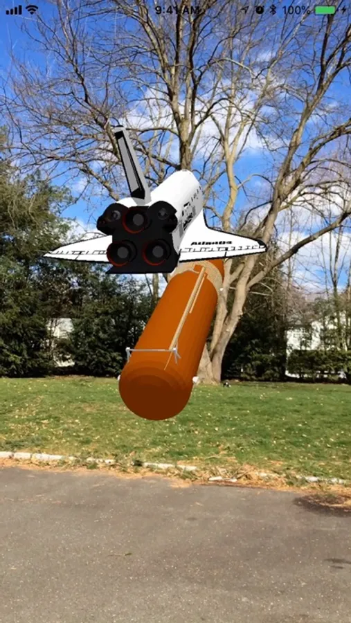 The Space Shuttle was revived by Augmented Reality since their last flight in 2011. Augmented reality is a technology which virtual objects are displayed in the real world. You are the launch director of the Space Shuttle. Your mission is to launch the Space Shuttle and dock with International Space Station safely. The Space Shuttle will be launched with smoke and fire from the launch pad. The shuttle will separate booster engines and an external fuel tank. It will dock with Space Station above the earth. The sound and the count down make AR Space Shuttle more realistic. You can watch the shuttle's motions from various angles. Launch 3D virtual Space Shuttle on your backyard or any other places.