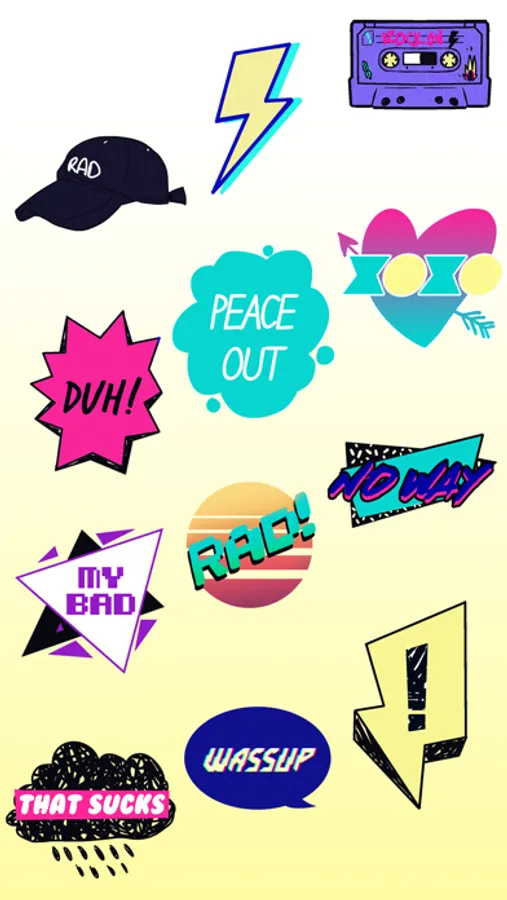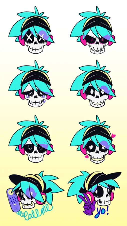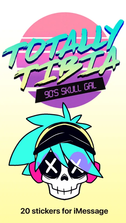 Yo — it’s Tibia. She’s rolling in with tons of 90’s style, but without skin, so it kinda evens out. In this sticker pack, you’ll find 8 extra-large emoji-style stickers, and 12 additional 90’s-isms to get your chat on.