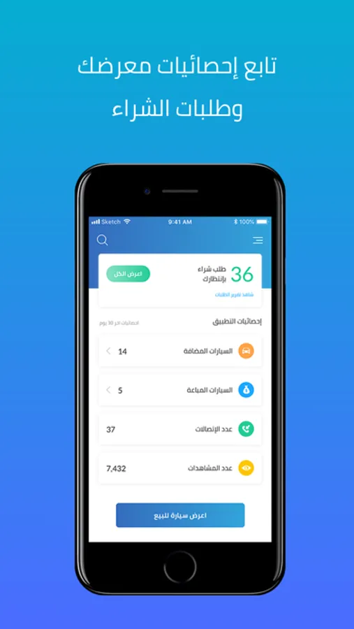 تطبيق سيارة للمعارض يخدم أصحاب معارض السيارات والوكالات ويوفر لك الميزات التالية لتنجح في تجارة السيارات: