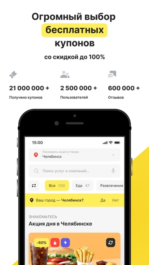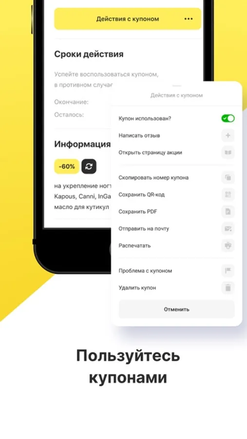 • бесплатные купоны — стоимость услуг/товаров оплачивается на месте получения