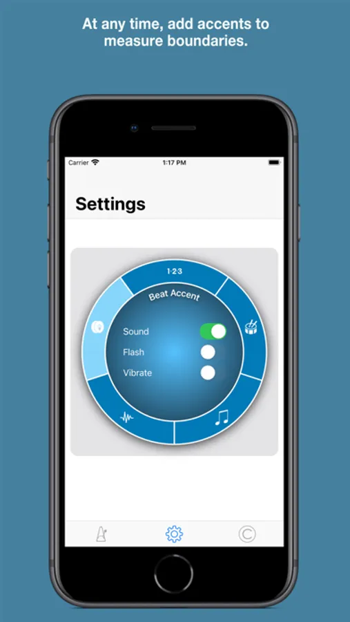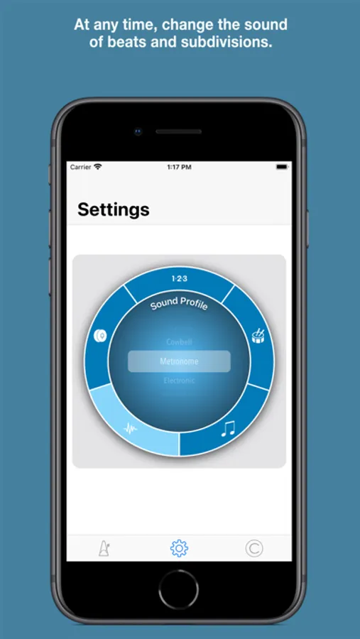 • Available sounds: Cowbell, Electronic, Metronome, Tick Tock, and Woodblock.