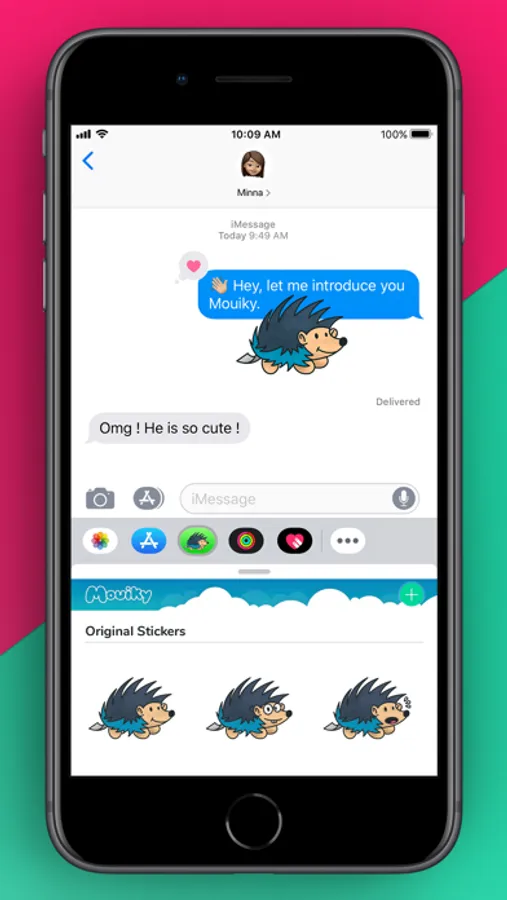 Bring some life to your iMessages with Mouiky Sticky the Hedgehog. The application features over 60 Stickers with the emotions, activities and faces of this cute little friend. Each sticker series offers free samples to discover the features of Mouiky Sticky before adopting it.