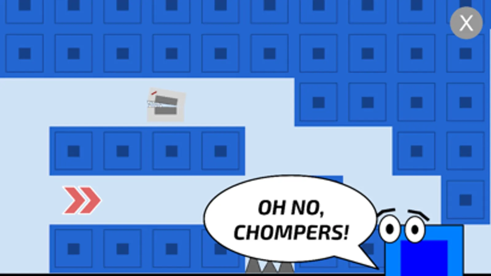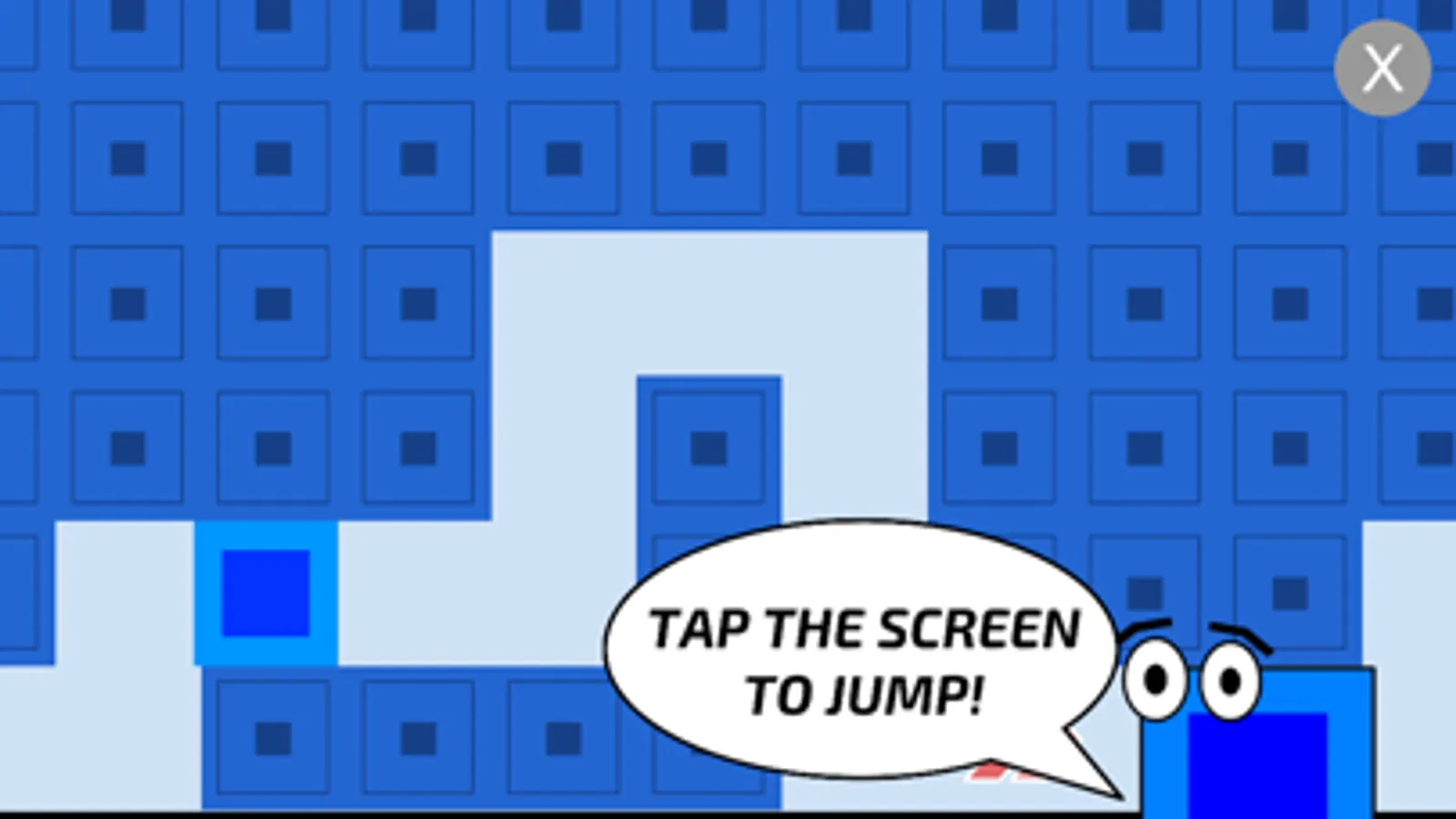 You will be able to select a stage in the stage menu and a level in the level menu. Press the "X" button during gameplay to exit the level. To finish the level, survive until you reach the finish line where you will either be brought to the next level, or sent to the level menu. To jump, just tap the screen. To do multiple consecutive jumps, tap the screen multiple times.