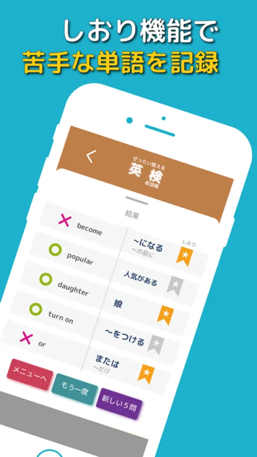「ぜったい覚える!英検4級単語帳」は、英検4級によく出る英単語を371個登録した、英検4級合格を目指す方のための学習ツールアプリです。