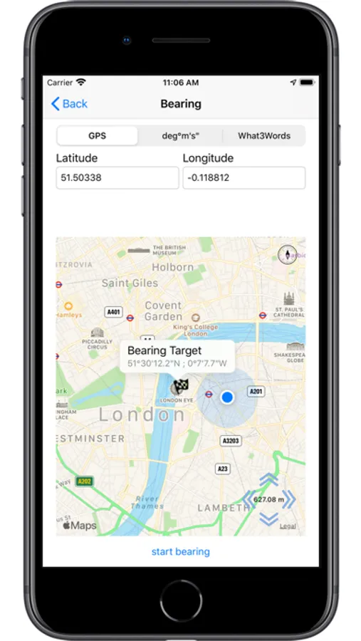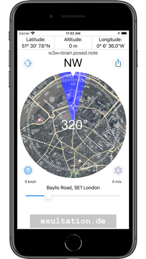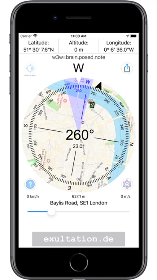 In addition, the position is displayed in What3Words (w3w) coordinates.