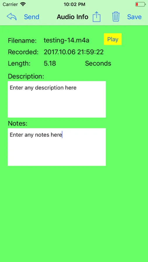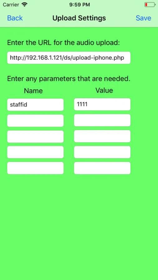 Parameters can be added to the URL as needed to additionally tag the audio as needed. A sample PHP upload script is viewable in the app as an example.