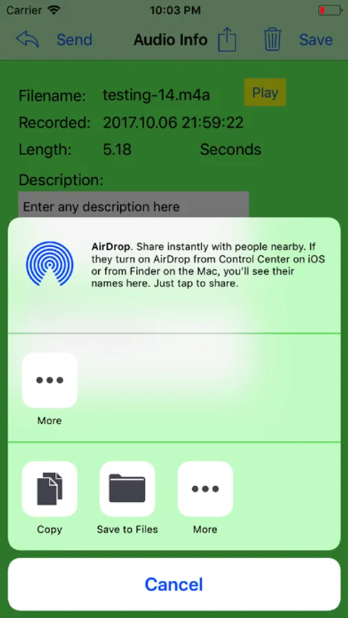 Voice memos is awesome, but they can not be sent to your own server.