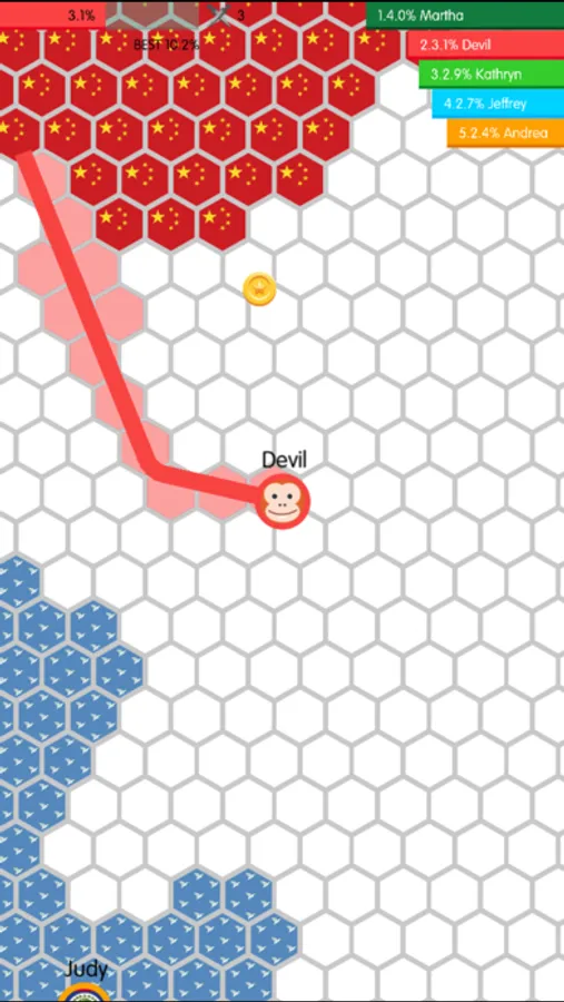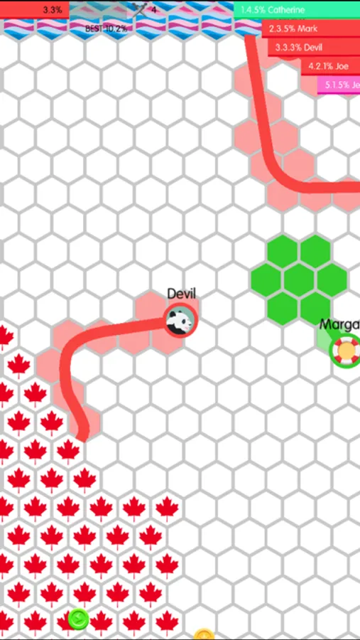 - Acquire new land by drawing shapes with your character and connect them back to your existing superhex io base.