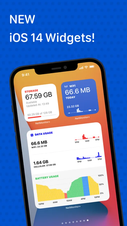 • New iOS 14 Widgets: quick view storage usage, data usage and battery usage right on Home Screen.