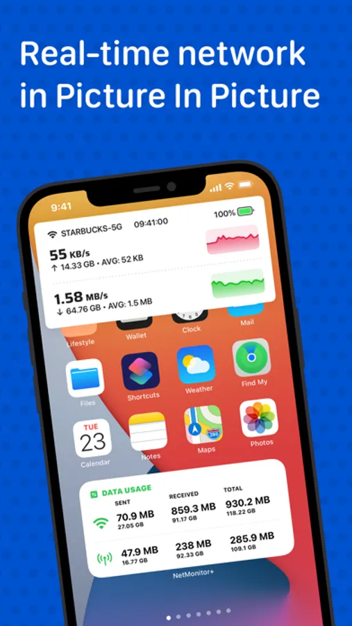 • Picture in Picture: see real-time network status in a mini movable and floating window.
