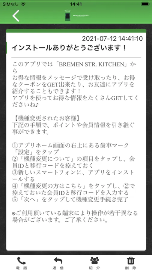 BREMEN STR. KITCHENのアプリをSNSを通じてお友達に紹介する事ができます。