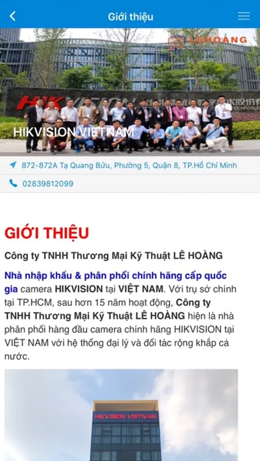 Nhà nhập khẩu & phân phối chính hãng cấp quốc gia camera EZVIZ, HIKVISON, HDPARAGON tại VIỆT NAM. Với trụ sở chính tại TP.HCM, hơn 15 năm hoạt động, Công ty TNHH Thương Mại Kỹ Thuật LÊ HOÀNG hiện là nhà phân phối lớn hàng đầu camera chính hãng EZVIZ với hệ thống hàng trăm đại lý và đối tác rộng khắp cả nước.