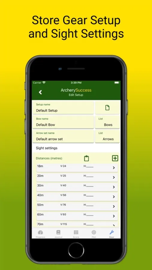 • Track gear setups: a bow, arrow set and sight settings