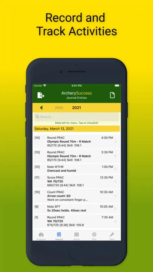 Track your training progress! Use as an archery diary for training activities and report arrow numbers, journal items and scores to your coach. ArcherySuccess does ALL THIS and MORE!