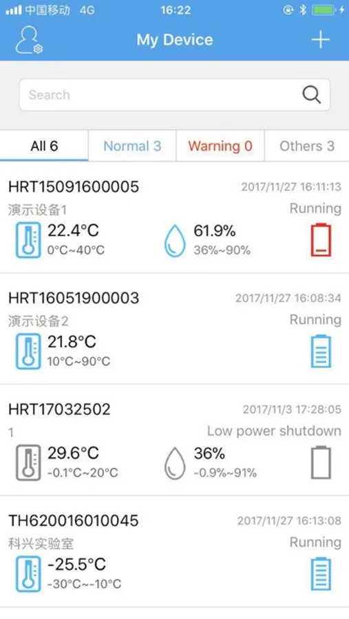 用户可在此APP上自行添加温湿度监控设备并进行设备的管理操作;