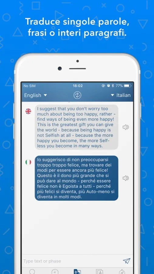 - Traduce singole parole, frasi o interi paragrafi