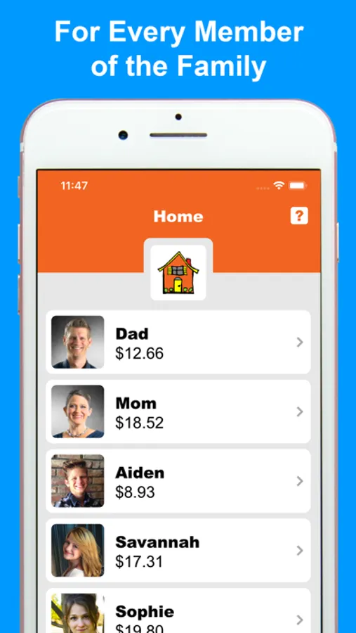 Moneypants is a chores, allowance, and personal goals app, all rolled together into one. It’s carefully designed to work for every member of the family (ages 2+) and to work long-term.