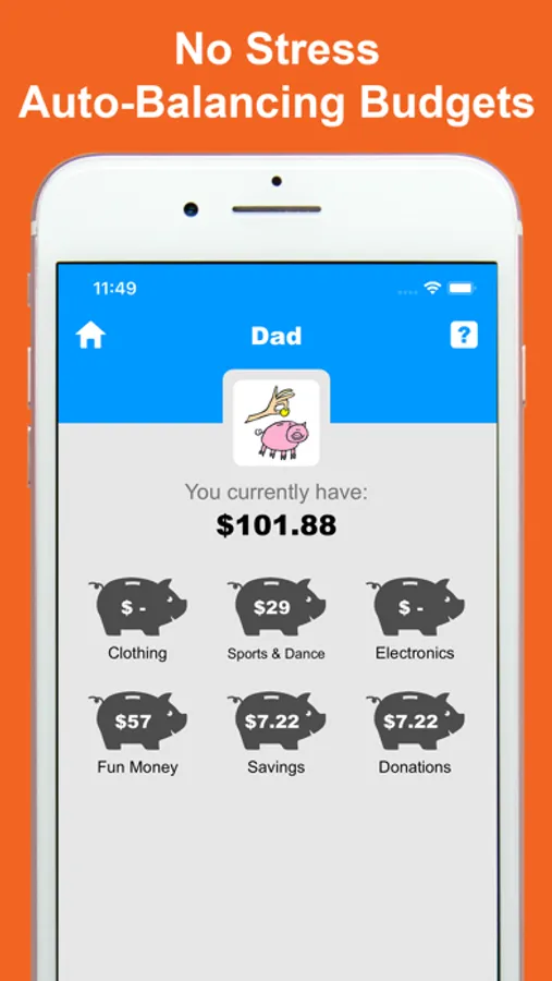 Moneypants is designed for the whole family to use, including the parents. Why parents? Financial experts agree that having personal spending money greatly reduces fights between spouses. This is exactly what Moneypants does for parents. They earn personal spending money by achieving their personal goals and completing their household chores.
