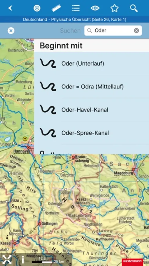 Die Suchfunktion ermöglicht den schnellen Zugriff auf jeden (Teil-)Begriff aus dem gesamten Diercke Weltatlas.