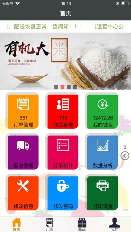 3.供应商可以在线查看以及打印所交易订单,配送管理等大数据统计。产品种类售卖情况一目了然。