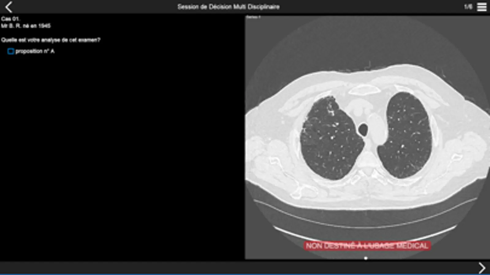 Consultez les examens tomodensitométriques des cas cliniques de pneumopathie infiltrante présentés lors de la session de discussion multidisciplinaire qui aura lieu dans la première partie de l'après-midi.