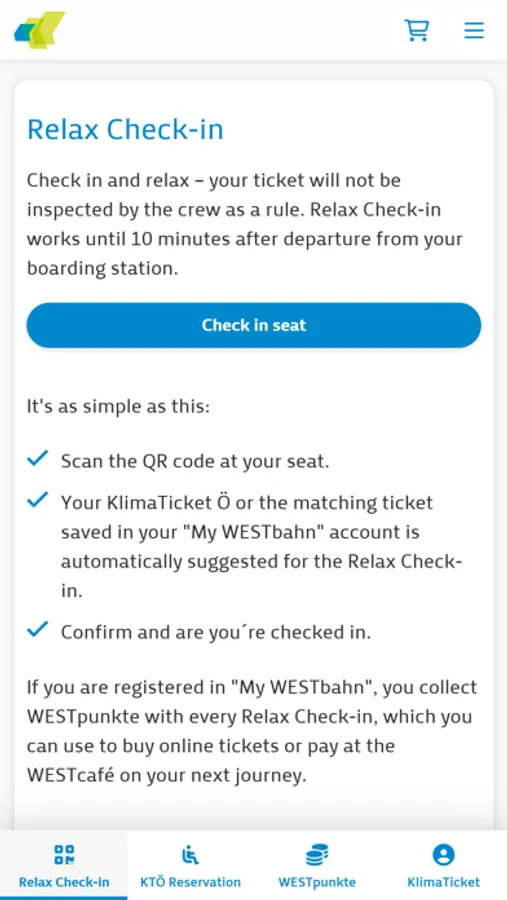 With the Relax Check-In function, you can conveniently check in yourself and collect Westpoints for doing so. You can then use these points for drinks and meals, additional tickets or upgrades.