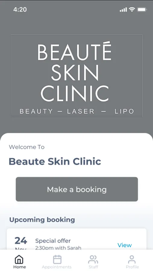 The Beaute Skin Clinic app makes booking your appointments and managing your loyalty points even easier. You're just a few taps away from feeling good and looking great!