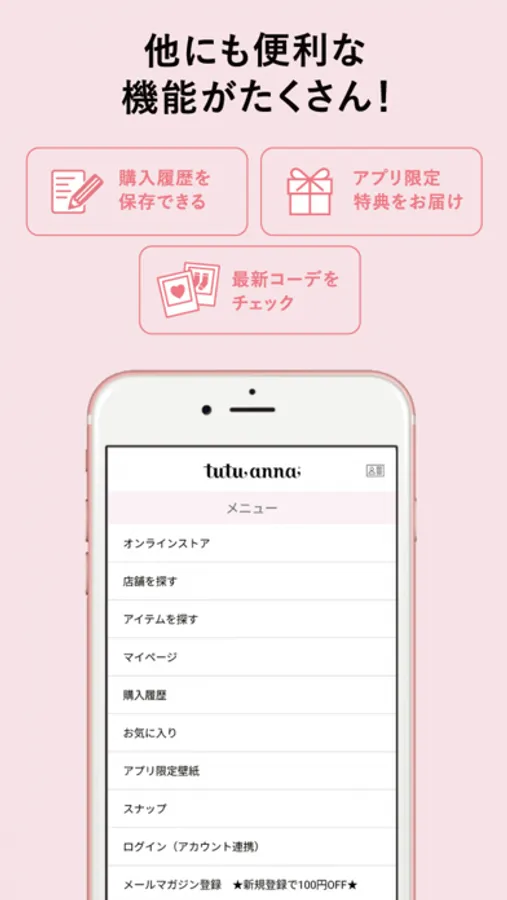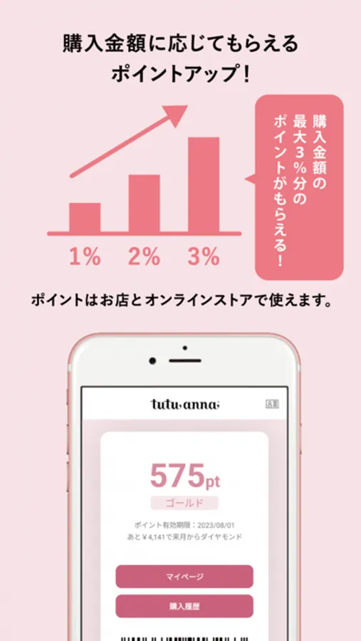 全国のチュチュアンナで使える会員証と、オンラインショッピングの機能をひとつに。
