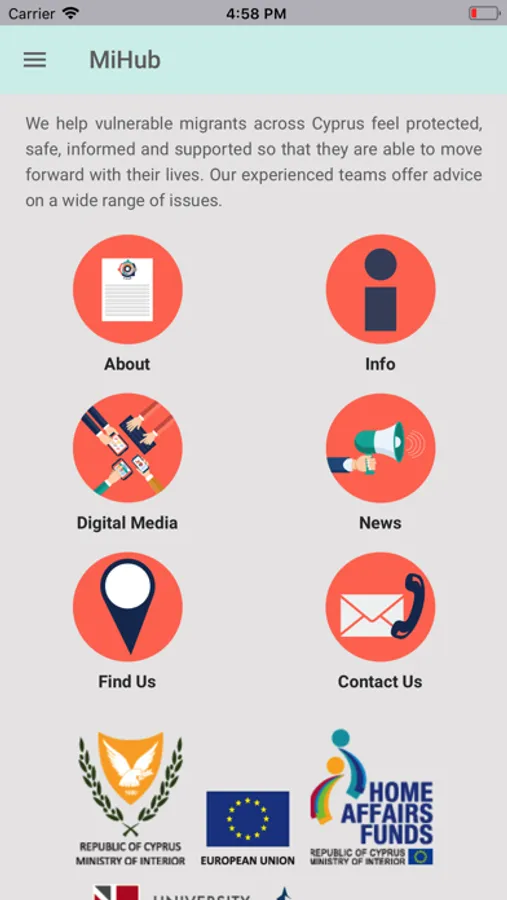 The University of Nicosia in collaboration with the research organisation CARDET, the Cyprus University of Technology and Neapolis University Paphos implements the Action entitled: Migrant Information Centre - MIC (CY/2019/AMIF/SO2.NO2.1.3/3).