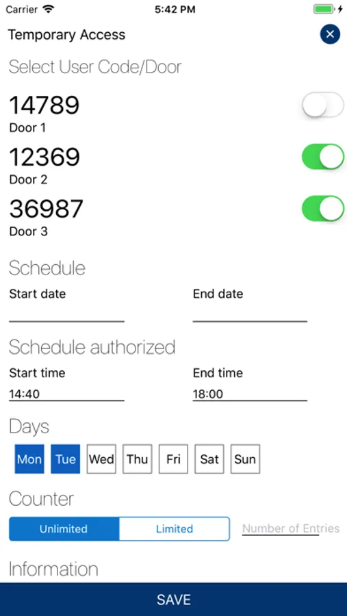 It is also possible to send a link (permanent or limited in time) to visitors so that they can enter safely without disclosing the user code.
