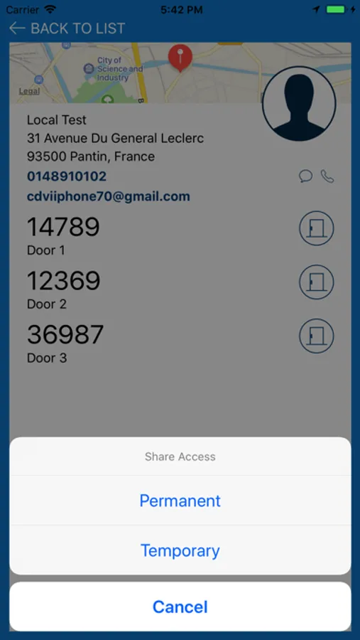 This application allows to open the door from the smartphone (it is no longer necessary to enter the user code on the keypad).